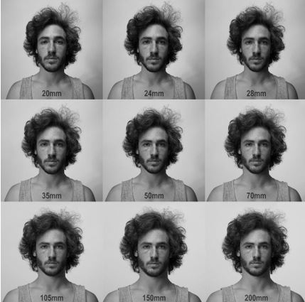Figura 43. Efeito do uso de objetivas com diferentes distâncias focais em retratos.